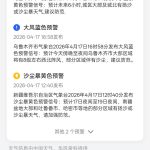 乌鲁木齐市已于2026年4月17日19时06分发布沙尘暴黄色预警信号,预计未来6小时内,城区及城北将出现扬沙或沙尘暴天气,需注意防范。